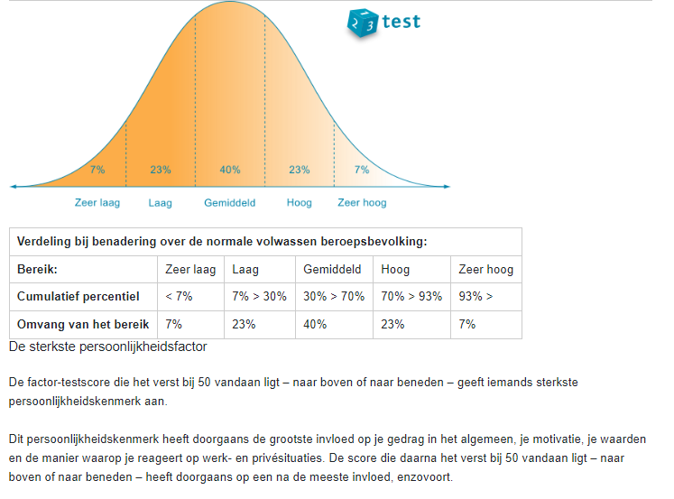 De uitslag van de persoonlijkheidstest geeft weer dat ik over de volgende persoonlijkheidseigenschappen beheers: